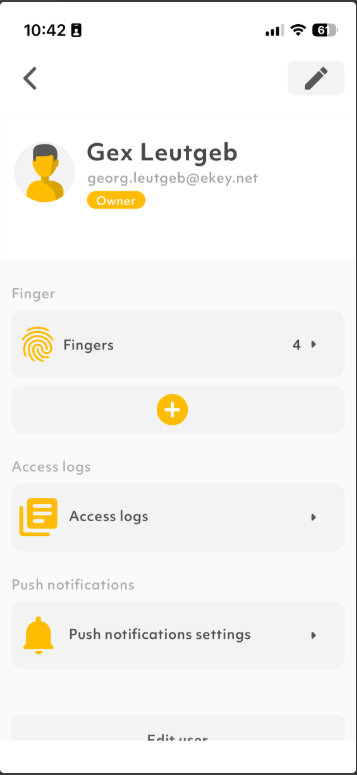 Repeat those steps until you have asigned all necessary functions to the finger and users.