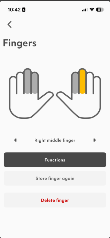 - Select the finger you would like to trigger the function first and then click on “Functions”. If you have not enrolled a finger yet, please take a look at our FAQ section on how to enroll your finger.